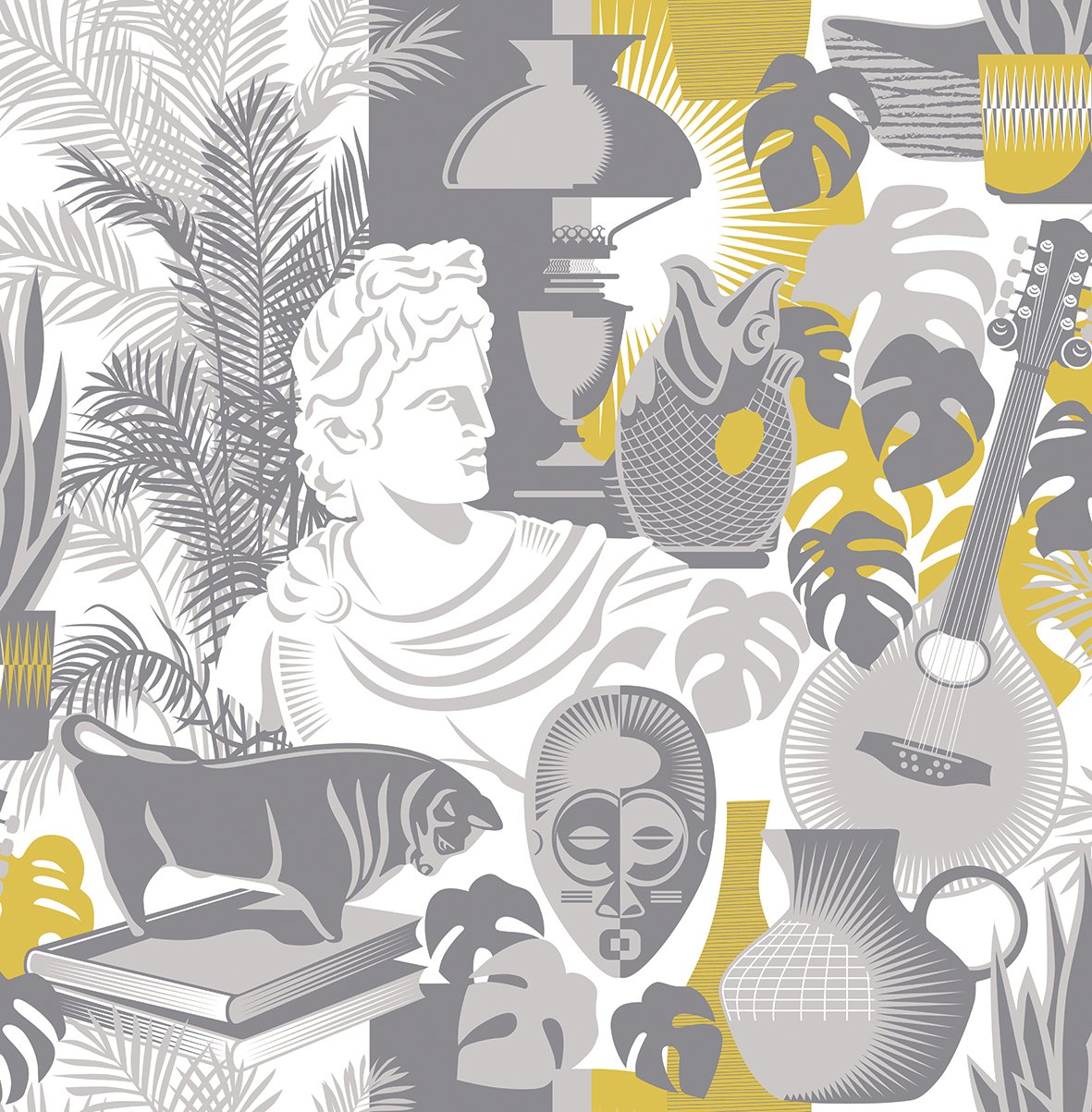 From classical bust to oil lamp, this eclectic and eccentric print features all the still life props we drew in our teenage art classes.