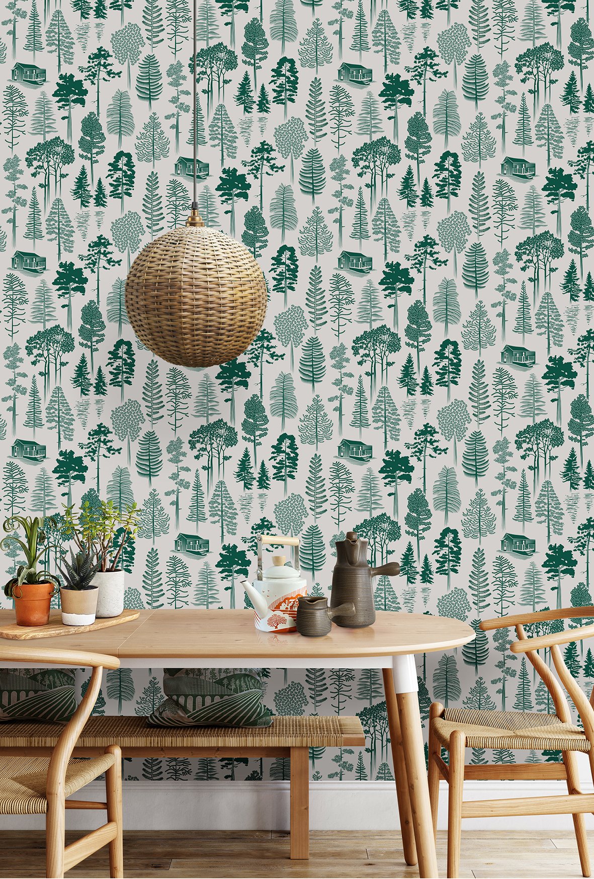 After years of frenetic New York trips, we decided it was time to discover more of what the state has to offer. So we hired a car and drove to Willow in upstate New York. On the way we stopped off at Woodstock and Beacon. This wallpaper captures the atmosphere of that trip, staying in a little wooden cabin on Silver Hollow Road, in the shadow of the Catskill mountains. Various species of trees native to the area are represented in the print, including Red Pine, Eastern Hemlock, Yellow Birch and Quaking Aspen.