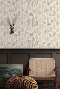 After years of frenetic New York trips, we decided it was time to discover more of what the state has to offer. So we hired a car and drove to Willow in upstate New York. On the way we stopped off at Woodstock and Beacon. This wallpaper captures the atmosphere of that trip, staying in a little wooden cabin on Silver Hollow Road, in the shadow of the Catskill mountains. Various species of trees native to the area are represented in the print, including Red Pine, Eastern Hemlock, Yellow Birch and Quaking Aspen.