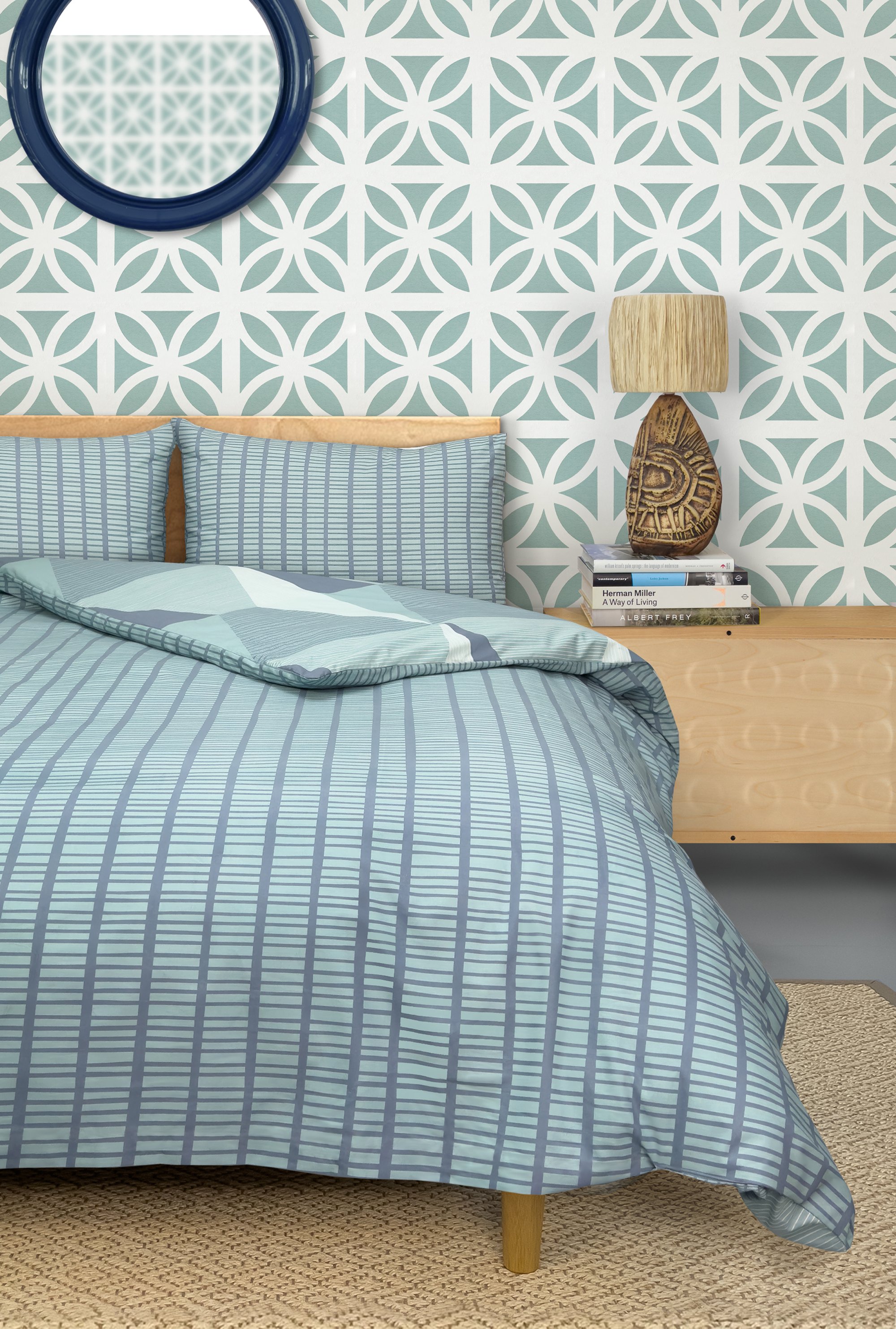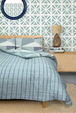 This reversible duvet cover set features two patterns: Palm Canyon Drive and Downtown. They were both inspired by our architectural pilgrimage to Palm Springs.