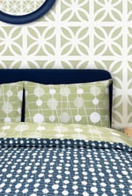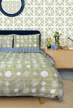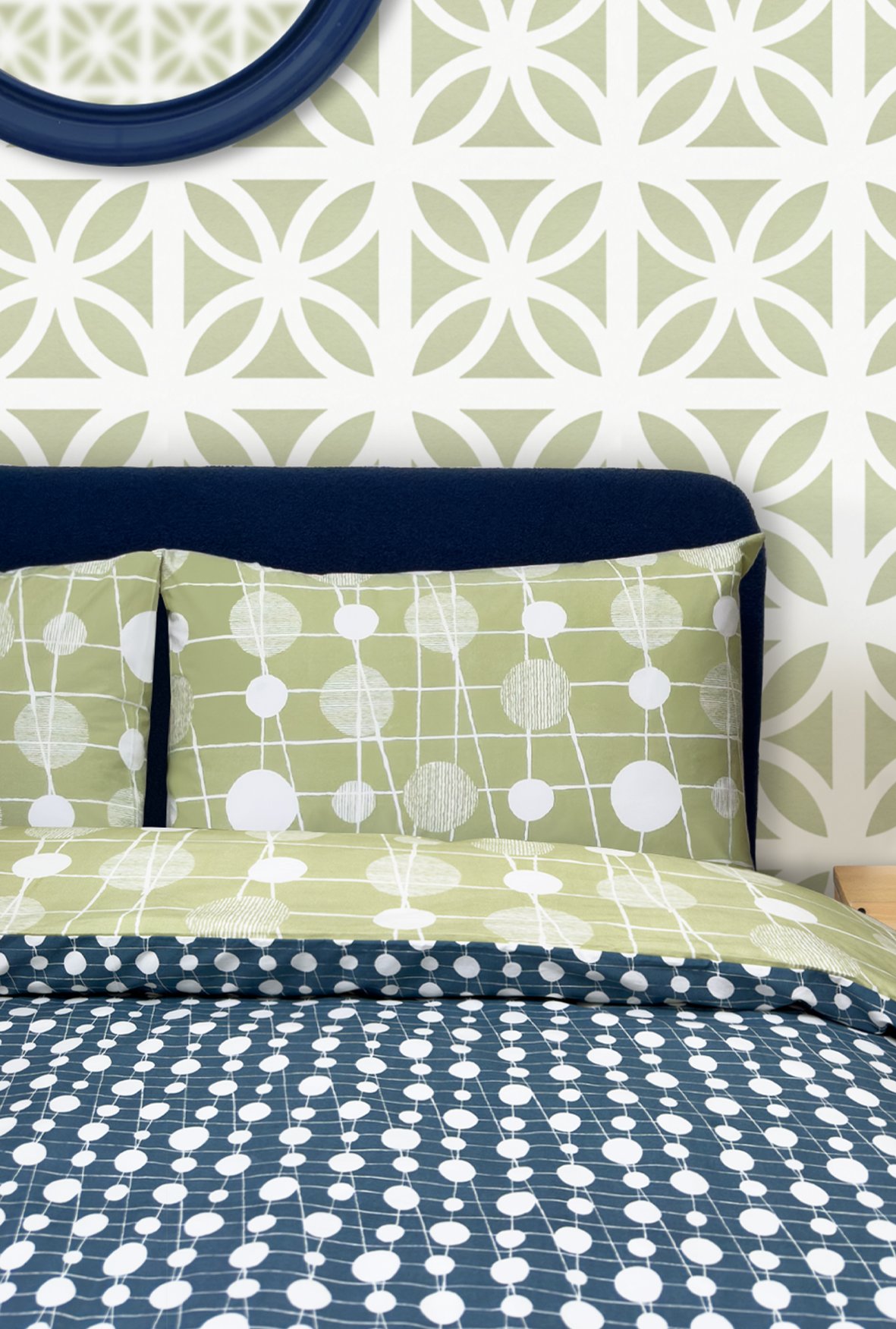 The abstract lines and dots of this Pavilion pattern echo the architecture of the Abacus Screen - a key feature of the 1951 Festival of Britain on London's South Bank.