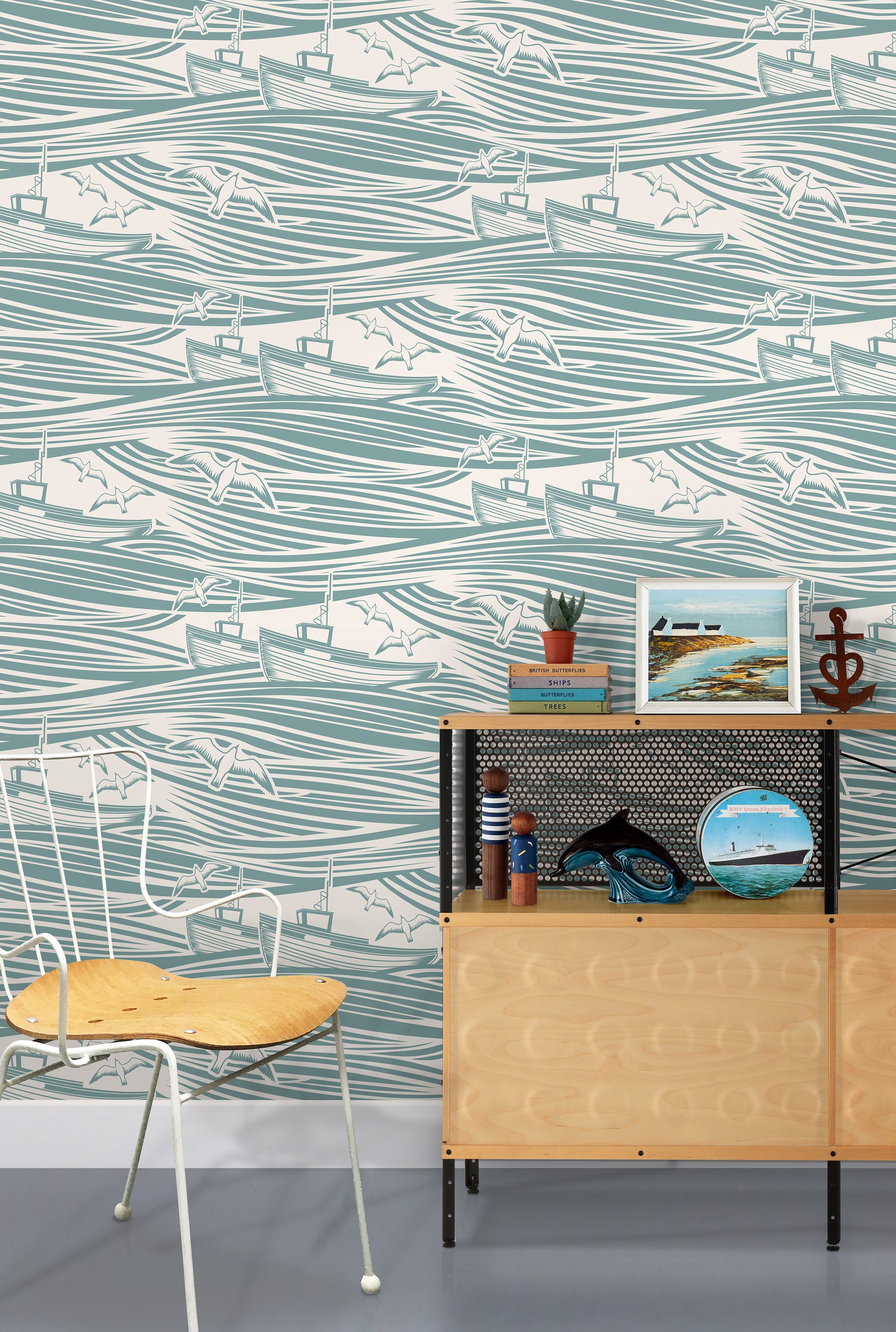 Inspired by 1950s linocuts, the bold wave motif of our Whitby design captures the majesty of the open sea.